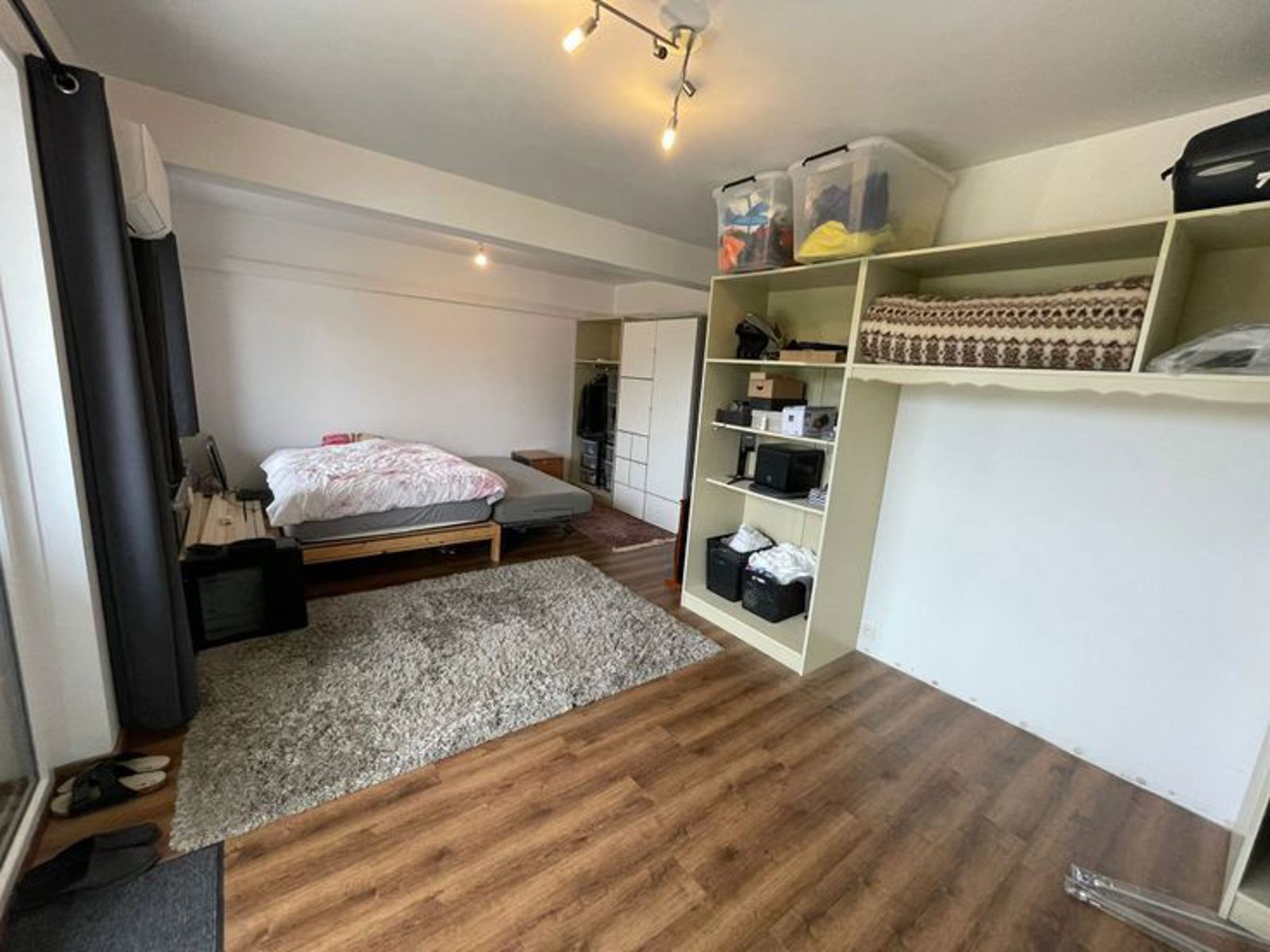 L'appartement comprend actuellement une grande chambre de plus de 25m², facilement divisible en deux belles chambres. Il dispose également d’une agréable terrasse de 8 m² et d’une cave privée de 4 m².